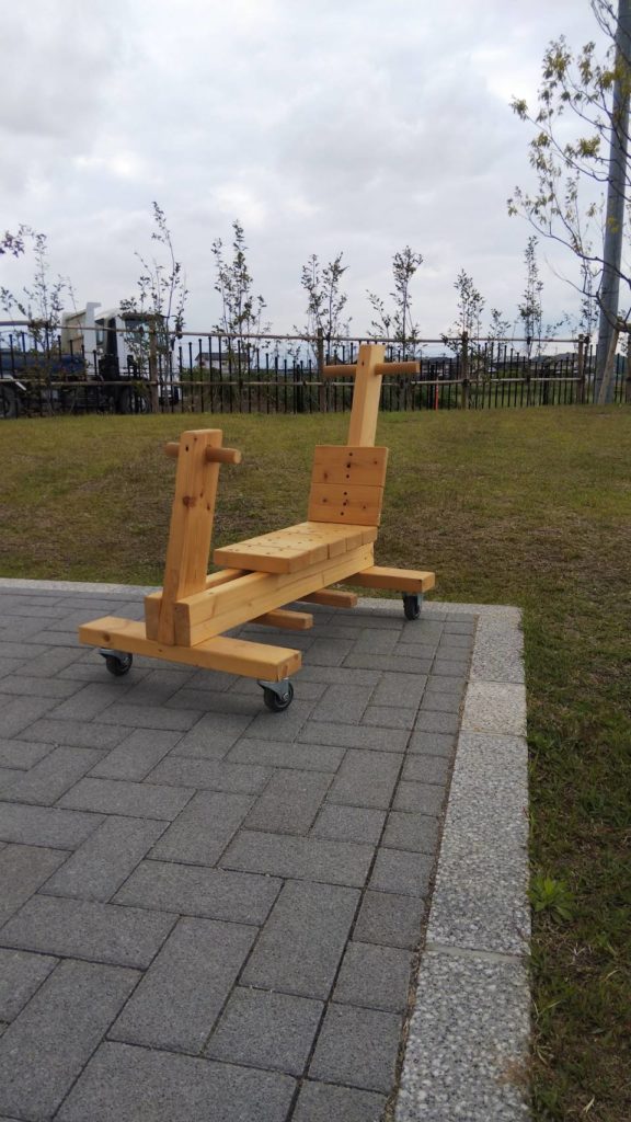 馬車はなかなかむつかしいので、乗って遊べる木のカートを作ることにしました。
